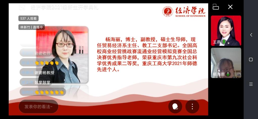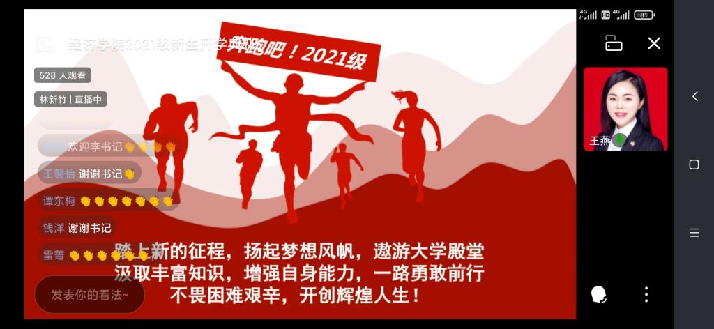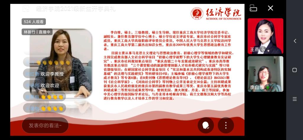 “敬道养正,励德修远”,9月11日上午,新葡萄8883官网AMG2021级新生开学典礼线上直播成功举行。新葡萄8883官网AMG副校长、新葡萄8883官网AMG院长李敬教授、新葡萄8883官网AMG分党委书记李自维教授以及班子成员、系主任、辅导员,2021级532名本科生和50名研究生参与了本次典礼。典礼由学院党委副书记、副院长王燕教授主持。