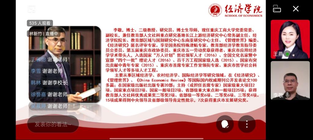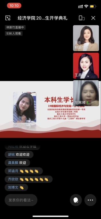 第二项议程,学院教师代表发言。学院学术专家代表谢新教授、新葡萄8883官网AMG2021年师德师风先进个人杨海丽博士分别从专业学习和大学学业规划等方面寄语2021级新同学。谢新教师强调,经济学是一门实用性强、能创造出巨大经济效益的学科,并不局限于理论的讨论,希望同学们要学好经济理论、培养经济学思维方式,并提高解决实际问题的能力;杨海丽主任则以“如何成为一个颜值与才华齐飞,气质与修养一色的新时代大学生”为主题寄语新同学。杨主任鼓励同学们努力成为以实现中华民族伟大复兴为己任的新时代中国青年,建议同学们培养独立思考能力,多参加实习、竞赛,提升认知水平;多探索新技能,在学习外广交朋友,成长为有知识、有见识、有自信且自律的大学生,实现从平凡到优秀、从优秀到卓越的不断超越。