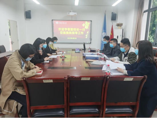 4月1日上午,副校长李敬到新葡萄8883官网AMG调研疫情防控工作,人事处处长林文军、教学质量评估办主任曾晓松、教务处副处长韦晓兰陪同调研。新葡萄8883官网AMG领导班子参加了座谈会。
