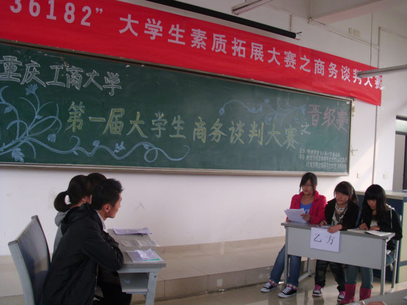 为让新葡萄官网学生更好的了解商务贸易知识,提高专业知识到商务应用的实际操作能力,增强谈判和沟通能力,第八届“36182”大学生素质拓展大赛之新葡萄8883官网AMG第一届大学生商务谈判大赛之晋级赛于11月26日下午2点在7306教室拉开帷幕。本次大赛由校团委主办,经济贸易学院团委学生会创业实践部、学习科技部承办,旨在通过运用专业知识模拟商务谈判,激发学生实际运用知识的积极性,了解商务谈判的流程,锻炼学生商务实战的能力,从而让学生更好的适应社会的需求。经贸学院黄玲老师、周虹老师以及经贸学院08级贺兰山同学、范娜同学莅临比赛现场,担任评委。