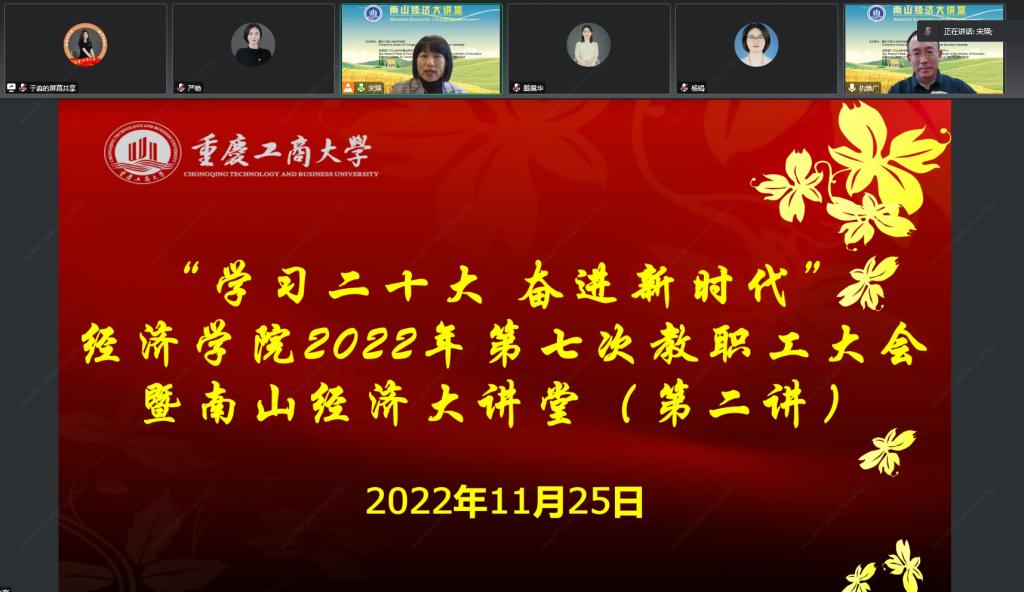 党的二十大,是在全党全国各族人民迈上全面建设社会主义现代化国家新征程、向第二个百年奋斗目标进军的关键时刻召开的一次十分重要的大会。为深入学习宣传贯彻党的二十大精神,11月25日下午,新葡萄8883官网AMG召开“学习二十大 奋进新时代”第七次教职工大会暨南山经济大讲堂(第二讲)。本次会议由新葡萄8883官网AMG院长宋瑛主持,特邀教育部长江学者特聘教授、中国人民大学农业与农村发展学院院长仇焕广在线做主题讲座,新葡萄8883官网AMG三百余名师生通过视频会议参会学习。