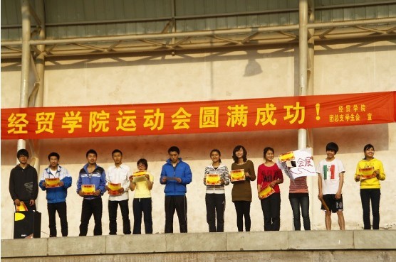 通过一整天的奋力拼搏,运动健儿们都得到了属于他们的荣光。本次运动会的最佳组织奖由08级会展班所得,最佳体育道德风尚奖的荣誉则由10级经济学2班捧走。同时,本次运动会中表现突出的班级得到团体奖的,从第二名到第六名依次是:09级贸经1班、09级贸经3班、10级国贸2班、10级贸经2班、10级会展班,10级经济学1班以最高分摘得本次学院运动会的桂冠。