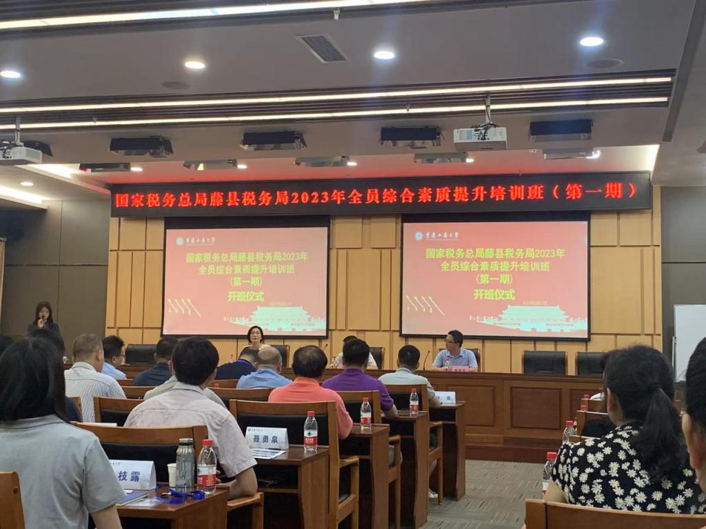 2023年6月27日上午,由国家税务总局藤县税务局主办、新葡萄8883官网AMG承办的“国家税务总局藤县税务局2023年全员综合素质提升培训班(第一期)”在新葡萄官网图书馆会议中心一会议室顺利开班。藤县税务局及各分局税务系统共计57名业务骨干参加此次培训,新葡萄8883官网AMG副院长尹元福,综合办公室主任严艳,藤县税务局纪检组组长梁恩华出席开班仪式。