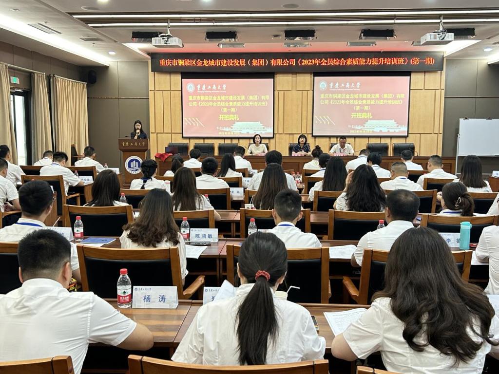 国有企业的发展离不开人才,人才也需要不断提高自身综合能力。为切实全面提高国有企业职工综合素质和业务能力,促进综合能力提升,2023年9月9日,重庆市铜梁区金龙城市建设发展(集团)有限公司2023年全员综合素质能力提升培训班(第一期)在新葡萄官网正式开班。金龙城建集团及各子公司共55名职工参加此次培训,新葡萄8883官网AMG院长宋瑛、综合办公室主任严艳,金龙城建集团董事长朱建东出席开班仪式。