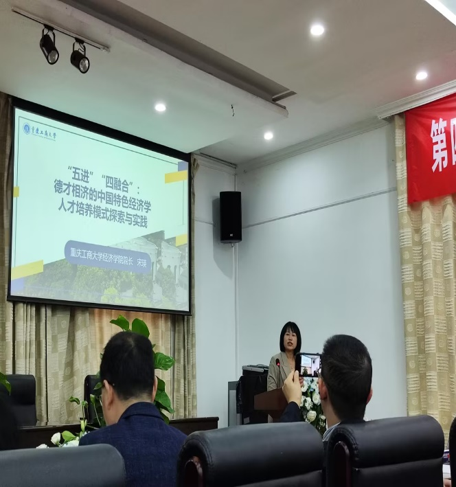 会上, 宋瑛院长在“科教融汇”分论坛上作了“五进”“四融合”:德才相济的中国特色经济学人才培养模式探索与实践的主题发言,详细阐述了教育改革的重要意义、问题导向的改革思路以及我院拔尖人才培养的改革举措、人才培养模式、存在的问题和下一步实践路径等,为西部地区高校财经类专业教学改革、学科建设以及数字经济时代经济学类拔尖人才培养改革发展提供了思路。同时,宋瑛在会上郑重邀请了与会专家学者参加将由新葡萄官网承办的第五届西部财经教育论坛暨第十七届普通高等院校经管学院院长联席会。会后,多所高校的经管院长和教师代表踊跃与宋瑛院长进行交流互动,我院经济学拔尖人才培养模式和教学改革引起了现场嘉宾和观众的热烈反响。