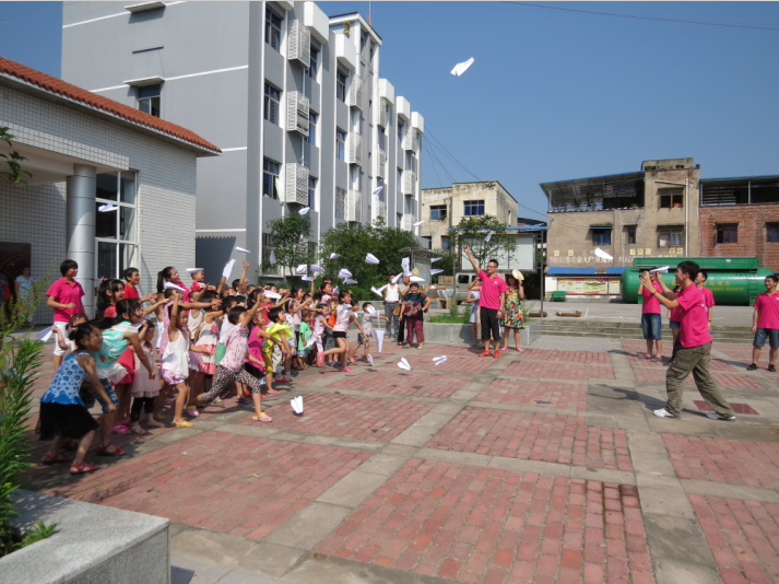 上午九点,活动在一个小游戏中拉开帷幕,孩子们积极参与,为整天的活动营造出了轻松、愉快的氛围。美术课上,实践团成员小王化身为孩子们的美术老师,带着孩子们,从纸上一颗希望的种子开始,到发芽的幼苗,慢慢长成参天大树。而市民学校的这些孩子,正如慢慢成长起来的幼苗,他们是希望,承载着每一个家庭的梦想。在实践团小王老师的带领下,孩子们将满载希望的画纸折成纸飞机,在空旷的小操场卯足了劲把纸飞机放飞,让纸飞机带着他们的希望飞得更高更远。随后,实践团又为孩子们带来了音乐课、英语课以及安全常识课等素质拓展课。孩子们聚精会神,认真听讲,实践团成员们耐心指导,在欢笑声中结束了一天的活动。