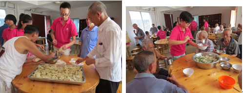 “中国梦”不只是年轻人的梦,更是我们国家近2亿老年人的梦,志愿者们首先用浅显易懂的语言讲解了实现伟大“中国梦”的相关知识,还特意为老人们表演了精心准备的文艺节目,节目勾起了老人们对往事的无限回忆。志愿者们一边陪着老人聊天,听老人讲过去的故事,一边与同老人们一起包饺子。在活动中,同学们都深深感觉到老年人真的需要社会的更多关注,他们最大的梦想莫过于子女的陪伴和关爱,能够与家人团聚、共享天伦之乐。