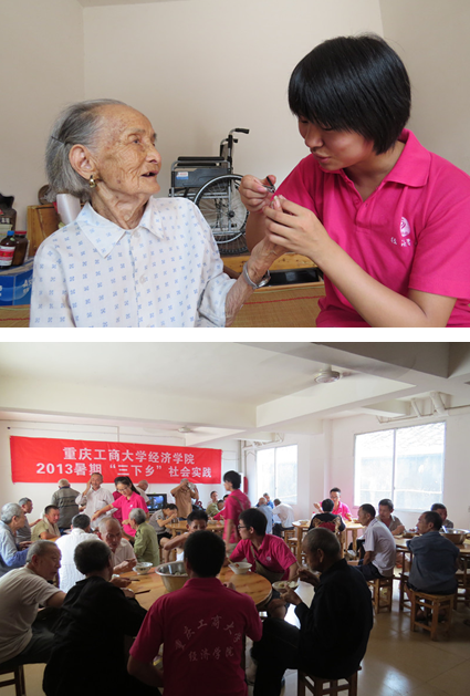 7月5日,新葡萄8883官网AMG暑期“三下乡”社会实践团的成员们,来到铜梁县二坪镇兴龙社区敬老院,开展“关爱长者、用心陪伴,畅聊‘中国梦’”活动。