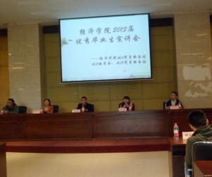 此次宣讲会吸引了学院很多同学的参加,可说是座无虚席。首先,主持人拉开会议帷幕,雷书记做出开场白,表达了对本次宣讲会的希冀和对优秀毕业生的祝贺。紧接着,是对来到现场的五位学长学姐的简短介绍,他们是甘兴、黄友亮、焦守阳学长以及周向颖、李敏学姐,通过PPT看到学长学姐们赫赫的荣誉,同学们心中更生崇敬之情,他们就是同学们未来的榜样和标兵。接着,进入高潮,由甘兴学长为始,给大家分享了他们在大学生活以及求职过程和经验,其中,甘兴学长说:“人要活在自己心中,不要活在别人眼中”以及告诫大家考研复习方面的注意事项; 黄友亮学长告诫同学们:“自己选的路,跪着也要走完”以及向大家讲述职业选择方面的考虑;焦守阳学长说:“跟着自己的规划走”以及谈到大学期间如何提高综合素质;周向颖学姐谈到:“淡泊以明志,宁静以致远”以及向大家讲解入职银行前的各项准备;李敏学姐提出要:“注重人际的交流与沟通”以及举例说明面试中的注意事项。他们句句是谮言,字字属千金,激励并告诫着各位同学。会议接近尾声,是同学们的提问环节,问题虽然不多,学长学姐们都做了仔细、详尽的回答。最后,本届优秀毕业生宣讲会圆满结束,掌声一片。