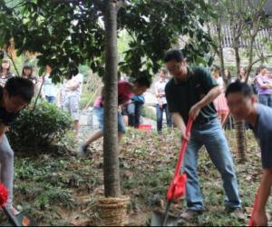 今日离校苗,明年桂花香。2012年5月17日下午4点,经贸学院2012届毕业生献礼校庆植树活动暨“经贸校友林”揭幕仪式在南岸校区举行。党委副书记朱伯兰,党委副书记、纪委书记周航,党政办公室、校庆办、校团委领导,经贸学院全体院领导、辅导员老师以及往届校友代表和2012届毕业生代表出席了此次揭幕仪式。