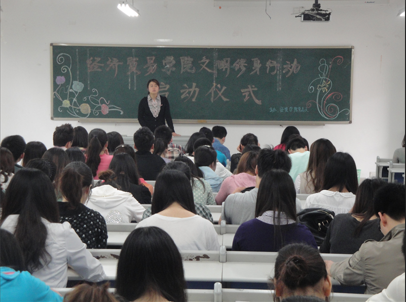 5月2日中午1点,由经贸学院党总支主办的“经济贸易学院文明修身行动启动仪式”在田家炳书院410教室成功举办。到场的嘉宾有经贸学院党总支张筱璐书记、李华平副书记,经贸学院学团办杨华俊主任,团委书记林新竹老师,经贸学院辅导员黄玲老师、喻智成老师,以及经贸学院08级、09级、10级各班班委、北六和北二十一楼栋党服成员和各支部同学。