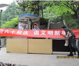 随着校庆的日益临近,学校各部门、各机构陆续开展文明修身活动,准备迎接校庆到来。北区二十一栋学生公寓楼管会、党员服务站也积极响应学校、学院的号召,于2012年5月3日举办“迎六十校庆,倡文明新风”活动。