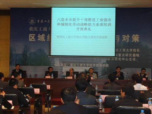 “六盘水市提升干部推进工业强市和城镇化带动战略能力素质培训班”于2011年4月12在新葡萄8883官网AMG开班。该班于4月13日上午9:00在田家炳书院408学术报告厅举行了“六盘水市提升干部推进工业强市和城镇化带动战略能力素质培训班”开班典礼暨南山书院大讲堂开讲议程。出席开班典礼的有新葡萄8883官网AMG校长杨继瑞教授,科研处处长余兴厚教授、南山书院总经理刘洪毅、经贸学院院长陈新力教授、六盘水市委党校副校长马秀峰以及123名六盘水学员。