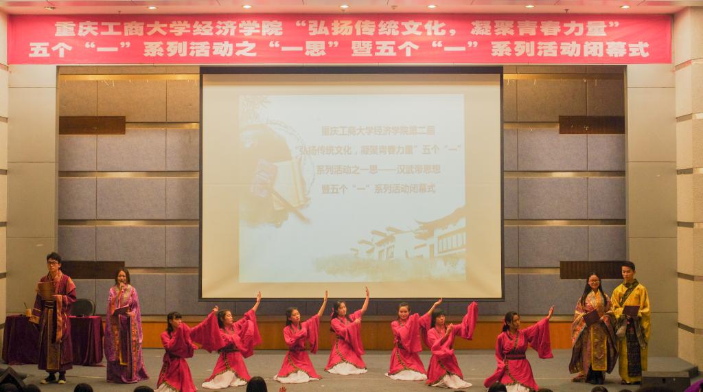 “弘扬传统文化,凝聚青春力量”五个“一”系列活动自2014年至今已成功举办两届,活动以同学们喜闻乐见的形式弘扬中华民族传统文化,得到了广大师生的喜爱和支持,受到了大家的好评。在第二届五个“一”系列活动中,我院将中国传统文化与专业特色相结合,凸显新儒商文化,激发同学们学习传统文化的兴趣和增强自身修养的意识,拓宽了当代大学生视野,培养了他们对中国传统文化独特的理解。