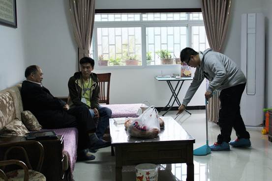 志愿者分成不同小组分别前往老人家中,陪老人闲话家常,帮忙打扫卫生等。志愿者们还准备了一些老人健身保养知识,亲自示范、指导老人做手指操,灵活关节……听听老人分享生活中的点滴,让他们不在感到孤单。