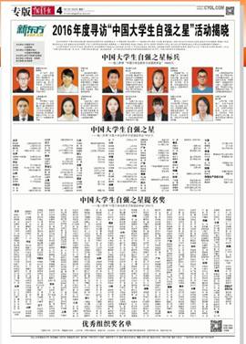 寻访“中国大学生自强之星”于2016年9月启动,以“青春自强·励志华章——一起来做‘六有’大学生”为主题,从爱国奉献、道德弘扬、科技创新、自立创业、志愿公益、身残志坚等不同角度,寻访为实现梦想自立自强、努力拼搏的当代大学生典型。经过校、市、国家级层层推选,新葡萄8883官网AMG贸易经济专业13级廖国甜同学被评为重庆市“自立自强”先进个人,并获2016“中国大学生自强之星”提名。