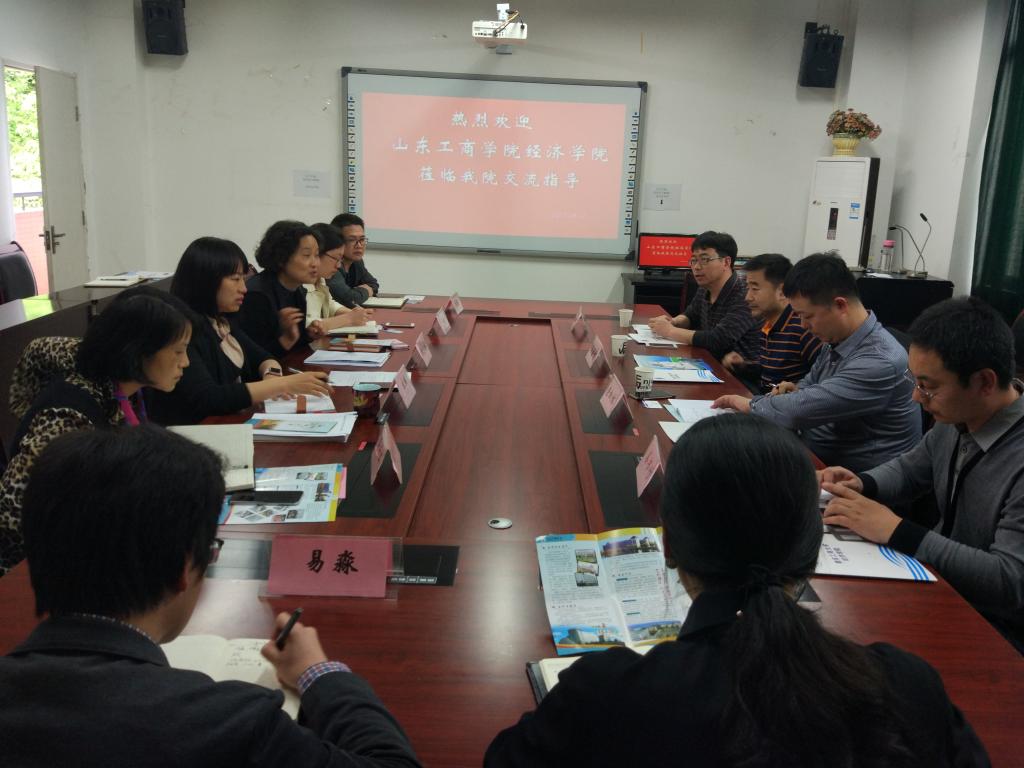 4月12日下午,山东工商学院新葡萄8883官网AMG党总支书记马金智、主管教学副院长唐松林一行人来我院调研交流。我院分党委书记王小玲、副书记于频、主管教学副院长宋瑛、经济系主任、国际经济与贸易系主任以及教务办全体人员参加了会议。会议由王小玲书记主持。
