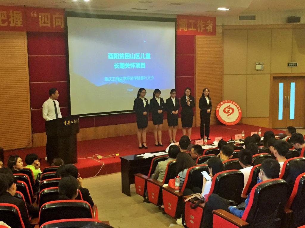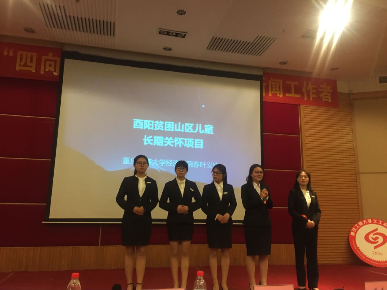新葡萄8883官网AMG春叶义协成功进入此次大赛决赛,并在决赛现场获得总分第二的好成绩,斩获大赛银奖。经济义协此次参赛项目目的地营盘村小学坐落于酉阳县兴隆镇偏远的大山脚下,当地人们的生活水平低下,大部分适龄儿童因为贫困而辍学在家。为了能够给孩子们创造更好的学习条件,帮助他们重返课堂,经济义协从2013年起一直持续关注这所小学孩子们的成长。志愿者们通过义卖、募捐、假期走访等一系列形式,先后为孩子们筹集了近10000元的资金,为孩子们搭建了图书角,并在2016年的家庭走访中给贫困家庭带去2000元的资助。未来,经济义协会持续关注这所小学的发展,用实际行动践行志愿服务精神。