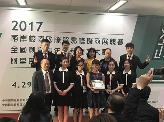 2017年4月27日—5月1日,由中国国际贸易促进委员会与台湾地区中华国际经贸研究学会联合举办的“2017海峡两岸校际国际贸易模拟商展竞赛”总决赛在台湾实践大学举行,新葡萄官网新葡萄8883官网AMG宋瑛副院长、国贸系蒋兴红主任和辅导员郝颖老师带领新葡萄官网代表队在此次赛事中获得了优异成绩。