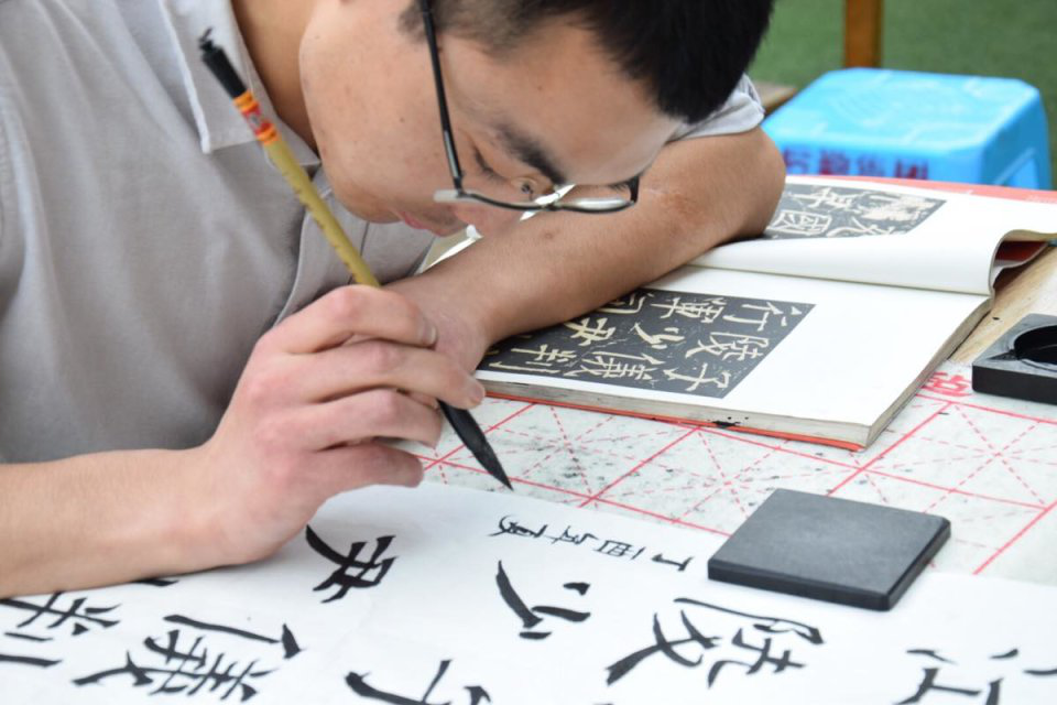 三十余名青年学子在新葡萄8883官网AMG书法大赛决赛暨首届“书法印象”杯全国书法、硬笔书法大赛分赛的比赛现场毫端蕴秀、泼墨临帖,同学们临摹古代碑文、书法大家名帖,内容涉及各类诗词歌赋,如王羲之的《兰亭集序》、赵孟頫的《洛神赋》、欧阳询的《黄帝阴符经》以及苏轼的《赤壁赋》等,参赛同学皆自幼习字,功底深厚,书体各有千秋,涌现出一大批硬笔、软笔的草书、隶书、楷书、行书优秀作品。