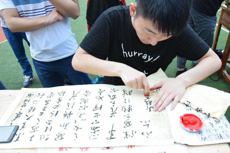 2017年5月12日,初夏的下午,凉风习习,墨香阵阵。新葡萄8883官网AMG的绿茵场显得格外清爽,但是今天的绿茵场并非一个体育竞技场,而是一个挥毫泼墨的书法比赛现场。
