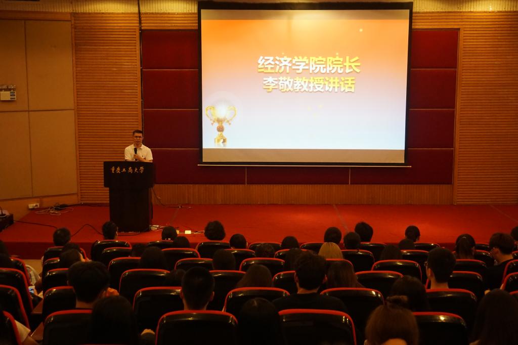 活动第二个环节是学院学风建设工作会。院长助理黄潇博士、经济学系副主任易淼博士、贸经系副主任林黎博士分别从学科发展、专业竞赛、考研等角度寄语同学们树立信心、扎实基础、广泛参与。随后,同学们观看了荣获全国季军、大陆地区第一名及2016校长荣誉奖的国贸技能大赛团队视频展播。14级国贸2班郝泽坤同学作为国贸技能大赛获奖代表发言,介绍了参与学科竞赛成功经验。
