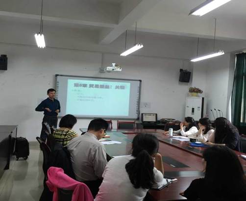 本次活动分为两个阶段:第一个阶段围绕试卷规范建设和教学质量督查展开。首先,蒋兴红主任简要介绍了系里审核评估工作的进程和当前重点。接着,陈菲老师带领大家学习了《新葡萄8883官网AMG命题及阅卷规范要求》,通报了学校督导组《2016-2017学年第1学期试卷检查情况反馈》中反映的主要问题。然后,蒋兴红主任对上学期试卷自查和本学期试卷规范提出要求,并就学院期中教学座谈会中学生反馈的情况进行了通报,希望全体教师切实优化教学,提高教学质量。第二阶段,国贸系新进教师刘飞宇博士进行说课,谢新教授做精辟点评。王小玲书记随后发言,高度评价本次活动,对新老师提出了殷切希望。并就毕业生就业中存在的问题建议在人才培养方案及教学改革中加以思考。蒋兴红总结指出,各位老师需要以迎接教学评估为契机,行动起来,切实推进试卷规范建设和教学质量提升。
