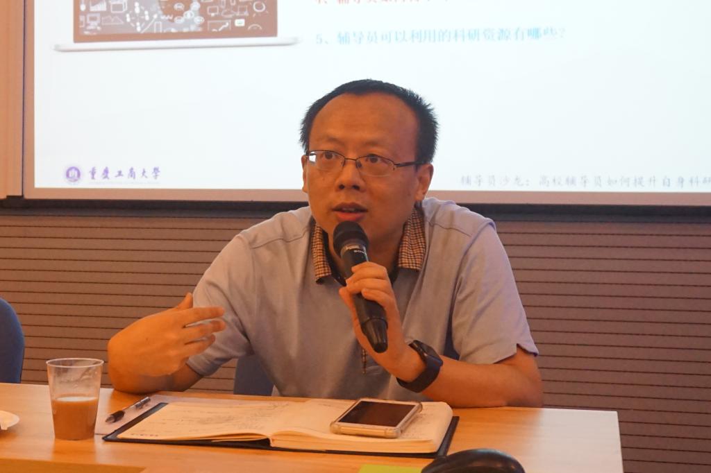 在沙龙讨论环节,文敏、张静、孔海啸、周晋、朱锡斌、冉永琴、林新竹等辅导员老师积极发言,围绕如何申报课题、如何组建科研团队、如何跨学科做科研、如何平衡日常工作与科研时间分配等问题展开热烈讨论。科研经验丰富的辅导员老师们均表示:科研团队的构建非常重要,要充分发挥团队成员各自的学科优势,形成通力协作、资源共享的氛围,也呼吁学校、学工部能够为辅导员们多搭建科研团队,解决部分辅导员老师们经验不足、非思政专业知识基础不扎实等问题。