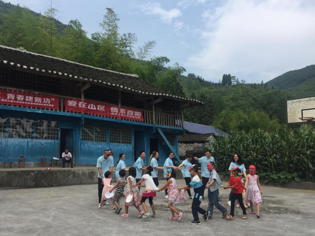 “黑黑的天空低垂,亮亮的繁星相随……”酉阳县兴隆镇营盘村小学简陋的教室里传出孩子们动人的歌声。新葡萄8883官网AMG“酉阳兴隆镇营盘村小学‘爱心包裹’志愿者项目”是获得首届重庆市高校志愿服务项目大赛金奖的项目。今年,也是志愿者们来到营盘村小学支教的第五个年头。虽然每月都有爱心包裹送递,但一年不见,孩子们还是怯生生的。在志愿者动听的吉他弹唱中,孩子们逐渐向志愿者们聚拢,志愿者们一句一句教唱,最终大家一起合唱了这首“虫儿飞”,稚嫩的歌声回荡在山间,孩子们认真的神情让志愿者们特别感动。