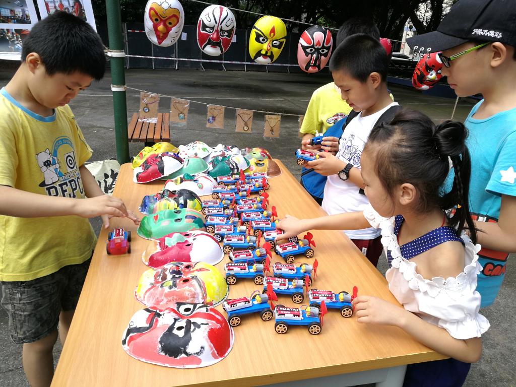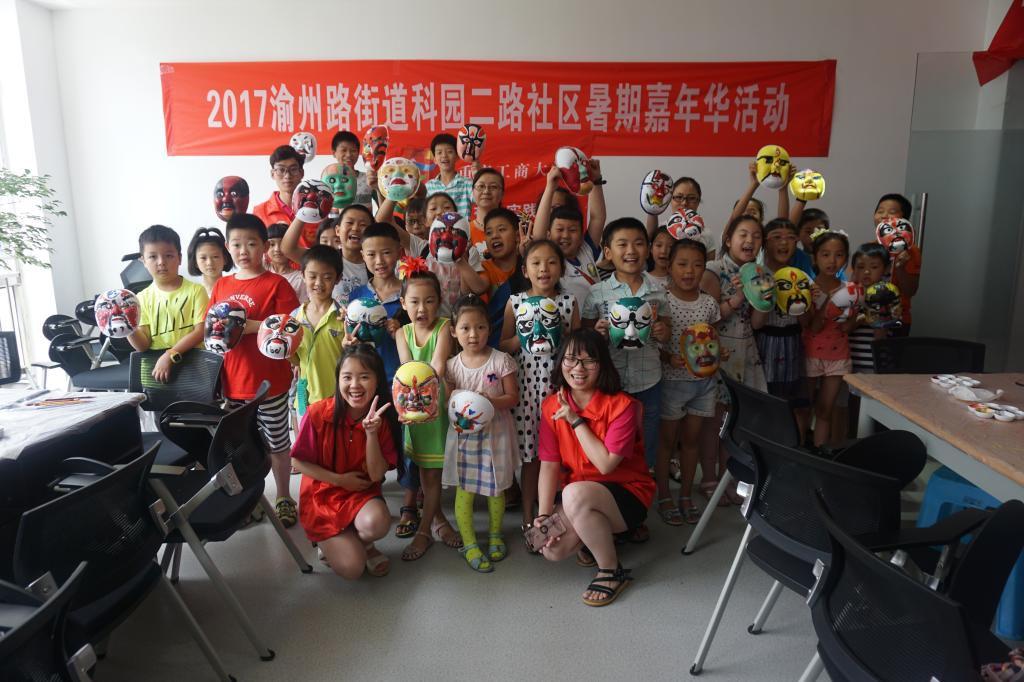 志愿者们还积极向社区少年儿童推广中华传统文化,开展了“第一套戏曲广播体操进社区”的活动,手把手教小朋友们做戏曲广播体操;介绍戏曲脸谱知识,启发小朋友们绘制戏曲脸谱,体会传统文化的无穷魅力。同时,志愿者还发起了爱心义卖,组织小朋友将手工课上制作的工艺品拿到社区义卖,将义卖所得全部捐献给酉阳兴隆镇营盘村小学的留守儿童。