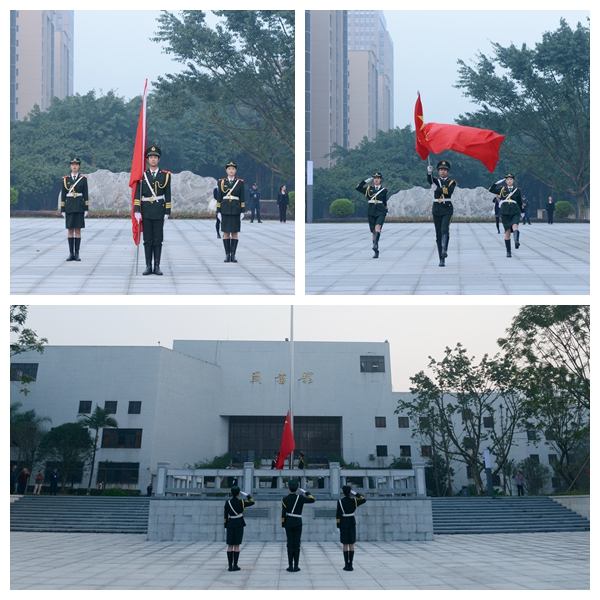 为进一步加强爱国主义教育,号召广大青年学子积极践行十九大精神、用实际行动为国旗填光彩。2017年11月6日早晨,在新图书馆(新葡萄8883官网AMG综合实践与文献中心)前的广场,由党委学工部主办,新葡萄8883官网AMG承办,以“砥砺前行结硕果,青年学子抒情怀。不忘初心跟党走,誓为国旗添光彩”为主题,举行了隆重的升旗仪式。党政办罗勇主任,学工部、学生处石世明处长,学生处学生科廖愉平老师,新葡萄8883官网AMG分党委于频副书记,新葡萄8883官网AMG全体辅导员以及新葡萄8883官网AMG15、16级的入党积极分子参与了这次升旗仪式。