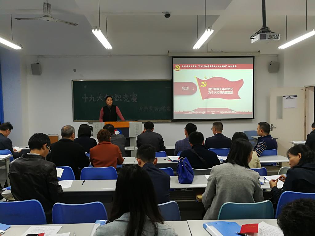 首先,新葡萄8883官网AMG分党委王小玲书记致辞,要求全体教师党员认真学习贯彻落实十九大精神,尤其是在学校接受评估期间,做好本职工作、起好模范作用。紧接着,在笔试普测阶段:赛前,学院分党委要求学院全体教师党员采取个人自学、党小组集体学习等方式,形成了人人学精神、熟悉理论的氛围;竞赛当天,有50名教师党员参加了现场闭卷理论测试(由单选题和多选题构成),其中45名笔试合格者获得了现场抢答权。最后,在现场抢答阶段:气氛十分热烈,党员同志们参与热情高涨,将竞赛活动推向了高潮,十道抢答题让大家感觉意犹未尽。
