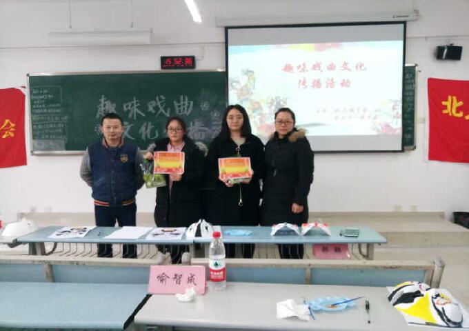 首先,北六栋楼管会主任郝颖老师为活动致辞,她特别说明了举办此次活动的目的:一方面是为了让同学们了解更多的戏曲文化知识,让大家动脑、动手亲自体验戏曲文化的魅力;另一方面是为本周六的晚上7点新葡萄8883官网AMG的“五个一”之戏曲文化艺术节预热和打广告,鼓励学生积极参与活动。