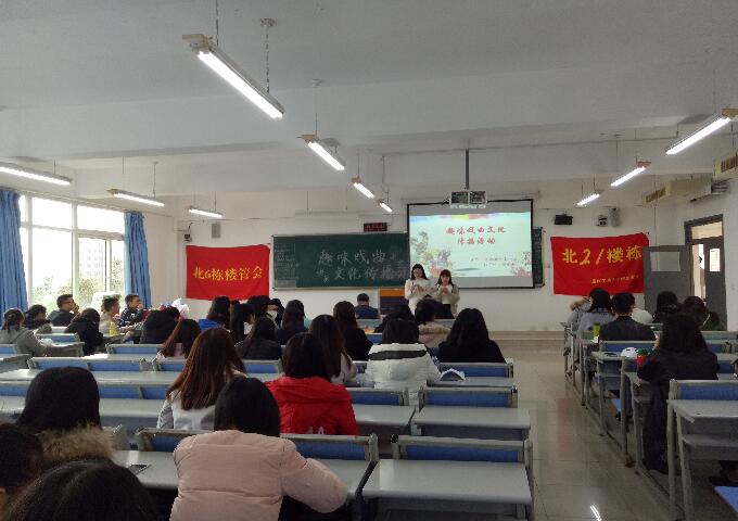2017年11月24日下午两点,由北六和北二十一楼管会联合举办的趣味戏曲文化比赛活动在7402教室顺利开展。到场的评委嘉宾有北六楼管会主任郝颖老师和北二十一楼管会主任喻智成老师,楼栋的学生干部和来自北6、北21、北15栋的参赛选手。