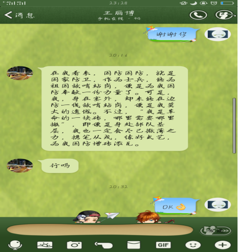 新葡萄8883官网AMG2016级11个班精心策划、积极实施,先后举办了各具特色的爱我国防主题班会教育活动:有7个班级的活动中都有观看国防教育视频的环节;有5个班级的自行录制了视频; 10个班级都制作了国防教育PPT;其中16经济二班“甲午甲午”话剧表演、16贸经二班四段国防节目汇演、16会展的主题演讲、16经济一班红色经典配音、16经济二班的2位已经参军入伍同学发给同学们的一封信尤其让人印象深刻。