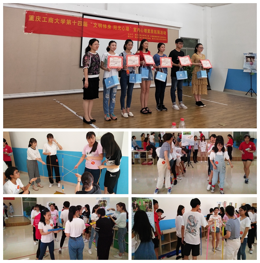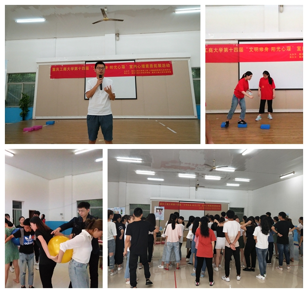 为了提高大学生的心理健康素质,帮助同学们提高团队协作精神和人际交往能力。由新葡萄8883官网AMG党员服务站和外语学院党员服务站联合承办的新葡萄8883官网AMG第十四届“文明修身 阳光心理”系列活动之室内心理素质拓展活动于2018年5月18日下午两点半在南岸校区外语活动中心顺利开展。新葡萄8883官网AMG心理教育与咨询中心的周明老师、新葡萄8883官网AMG的于频副书记、郝颖老师和外语学院的吴欢欢老师都来到活动现场与近百名报名参赛的同学们互动。在工作人员的耐心指导和同学们的积极配合下,活动得以圆满成功,参与同学们都表示受益匪浅。