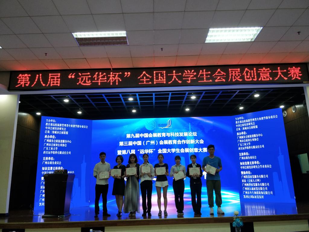 2018年5月24日至5月26日,由教育部高校旅游管理类专业教学指导委员会、中国会展经济研究会共同主办的第八届“远华杯”全国大学生会展创意大赛”在广东工业大学龙洞校区隆重举行。本次大赛吸引了来自全国近50所高校的55支参赛队伍,新葡萄官网13名学生组成的2支队伍参加了创意策划组的比赛,经过紧张激烈的角逐,最终分别获得了二等奖和三等奖的好成绩。