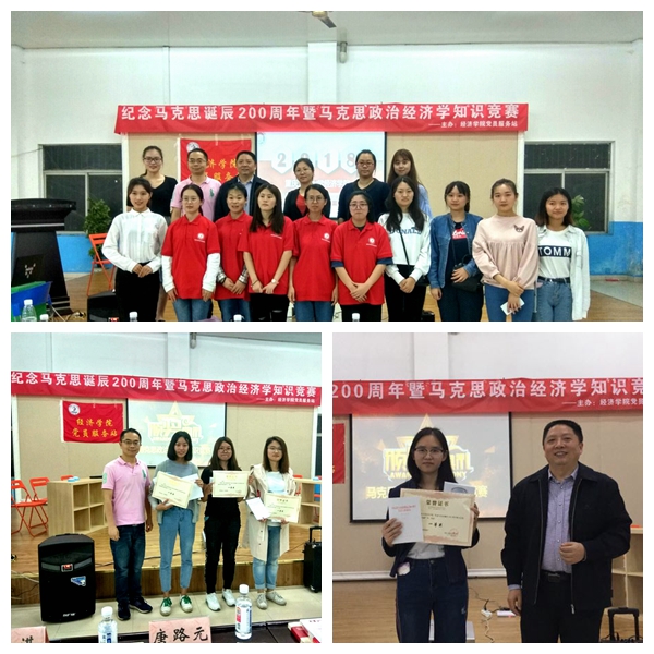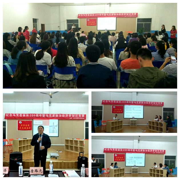 2018年5月31日,为了纪念马克思诞辰200周年,新葡萄8883官网AMG党员服务站于南岸校区外语活动中心举办了马克思主义政治经济学知识竞赛活动。活动邀请到新葡萄8883官网AMG博士生导师唐路元教授,新葡萄8883官网AMG分党委于频副书记,学生公寓管理科科长冯湛老师,新葡萄8883官网AMG党员服务站指导教师郝颖。活动开始前半个小时,现场早已座无虚席,同学们兴致勃勃、热情高涨,而参赛选手们更是摩拳擦掌,信心十足地等待着比赛开始。