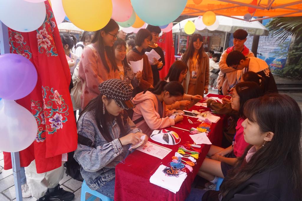 11月10日,新葡萄8883官网AMG分团委 “艺术之美我品尝,民间智慧永传扬”——新葡萄8883官网AMG五个“一”系列传统文化活动在新葡萄8883官网AMG南岸校区周末文化广场顺利举行。本次活动通过游戏的方式让参与本次活动的同学们在自己动手的过程中感受中国民间手工艺的魅力。本次活动一共有五个游戏环节,分别是:“裁剪出华彩”、“绘脸识英雄”、“造灯耀华夏”、“抛针绣乾坤”和“编结忆古情”。五个游戏分别以剪纸、画脸、造灯、刺绣和编结的方式,使各位同学在亲自动手制作的过程中,体会中国民间手工艺的巨大魅力,感受中国劳动人民的智慧结晶。顺利通过每一个游戏后可在通关地图上盖上相应的图章,获得三个图章及以上可以进行猜谜,根据猜谜情况设有一二三等奖,并且可以根据最终的成绩去兑换相应的奖品。
