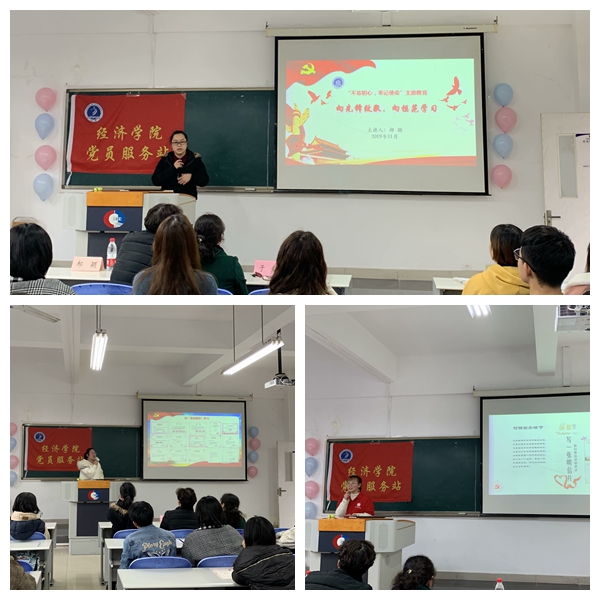 活动第三项:“向先锋致敬,向模范学习”主题党课讲授。为了贯彻重庆市委教育工委《关于开展讲红色故事、讲革命精神活动的通知》精神和按照学校开展“讲红色故事、讲革命精神活动”的部署要求,郝颖老师就向“国家先锋”致敬、向佛系青年说“NO”、向身边模范学习三个方面为同学们进行了主题党课讲授。在观看习总书记为“中华人民共和国国家勋章和国家荣誉称号”获奖人授奖和其中十位杰出科学家先进事迹200秒回顾的视频后,同学们都从心底升起了对国家先锋们的敬仰之情;在向佛系青年说“NO”的板块中,同学们都认识到了奋斗对于青年的重要性;而在向身边模范学习的板块中,通过郝颖老师分享我院2019年感动校园人物——新葡萄8883官网AMG义工志愿者的感人事迹和2016年、2018年新葡萄8883官网AMG获得校长荣誉奖的团队和个人的先进事迹,同时邀请到2019年校长荣誉奖获得者杨文平学姐亲自到场分享获奖心得,同学们都燃起了努力学习、追求真知的满腔热情。