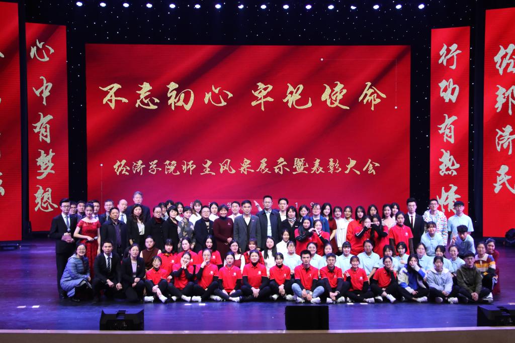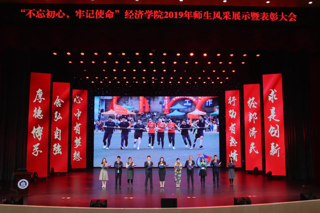 在一首振奋激昂的《少年中国》歌声中,大会拉开帷幕。新葡萄8883官网AMG院长李敬作全年工作总结,从教学、科研、学科建设、学团工作等方面回顾了2019年学院取得的成绩。新葡萄8883官网AMG分党委书记王小玲宣读市级、校级、院级优秀党员、党务工作者名单,并请李志雄书记、孙芳城校长为获奖师生颁奖。之后,经济系主任李然代表全体教师上台发言。大会还表彰了2019年度新葡萄8883官网AMG教学标兵、教学新星、学科竞赛优秀指导教师、教学竞赛先进个人及科研先进工作者,并展示了经济之星、校长荣誉奖、第十一届感动校园人物等学生风采,在现场观众的阵阵掌声中,表彰会迎来了一波又一波的高潮。