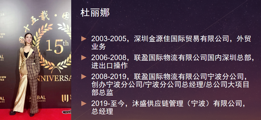 3月25日上午,沐盛供应链管理(宁波)有限公司总经理杜丽娜女士以“疫情之下,国际物流行业面临的机遇和挑战”为主题,进入新葡萄官网国际经济与贸易专业学生腾讯会议空中课堂。杜总首先介绍了国际物流在国际贸易中的重要性,接着分享了我国国际物流业的发展现状,然后分析了疫情下国际贸易及国际物流业面临的机遇和挑战,并展望了国际物流业的发展前景。最后,杜总跟同学们分享了对大家的期望和建议,并通过弹幕和语音与大家进行互动交流。