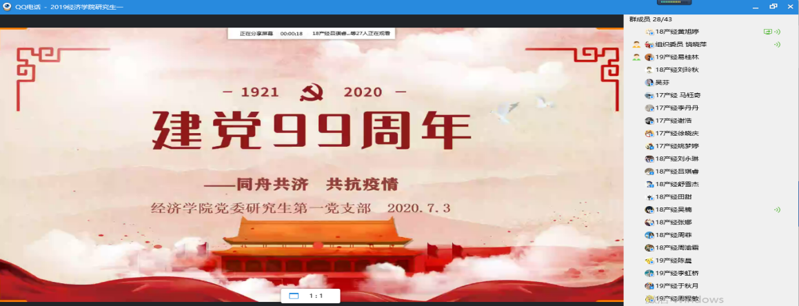 7月3日下午15点,新葡萄8883官网AMG党委研究生第一党支部在线上成功举办以“同舟共济、共抗疫情”主题的抗“疫”故事分享会。本次大会由组织委员饶晓萍主持,研究生第一支部全体党员参加此次活动。此次活动旨在持续加强支部建设,切实发挥党组织优势,教育引导师生党员进一步担当起来,坚定信心、经受考验,发挥党员先锋模范作用。大会进行,由黄旭婷同志分享新葡萄8883官网AMG分党委研究生第一支部的党员同志的抗“疫”故事。