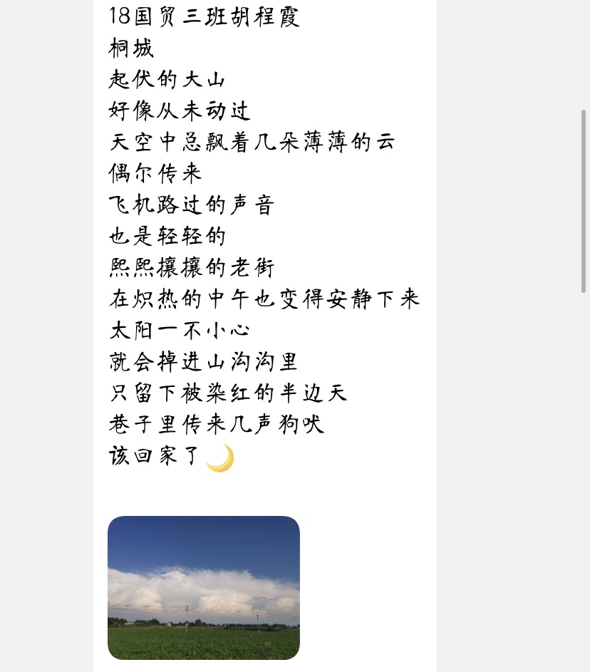 疫情增加了人与人之间的社交距离,但阻挡不了我们传播家乡文化热情,我们通过云参观、云游览、云打卡的方式,让同学们足不出户就能真切感受到祖国不同的山川地貌、人文景色,领略祖国的大好河山,激发了同学们勤奋努力建设家乡的热情 。