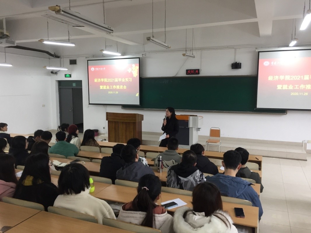 为了全面落实学校关于毕业实习要求,积极推进毕业生就业工作,近日,新葡萄8883官网AMG各系部先后组织召开了2021届学生毕业实习动员暨就业工作推进会。新葡萄8883官网AMG分党委副书记兼副院长王燕、副院长朱沙、经济学系主任李然、贸易经济系主任杨海丽、国际经济与贸易系主任蒋兴红,2021届学生辅导员邓雪霜、张涛、文理分别出席了相应的动员推进会。