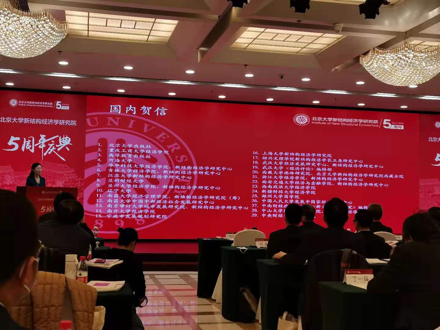 2020年12月12日,北京大学新结构经济学研究院成立五周年院庆活动在北京大学举办。我院副院长黄潇、经济系主任李然,代表学院参加了该项活动。