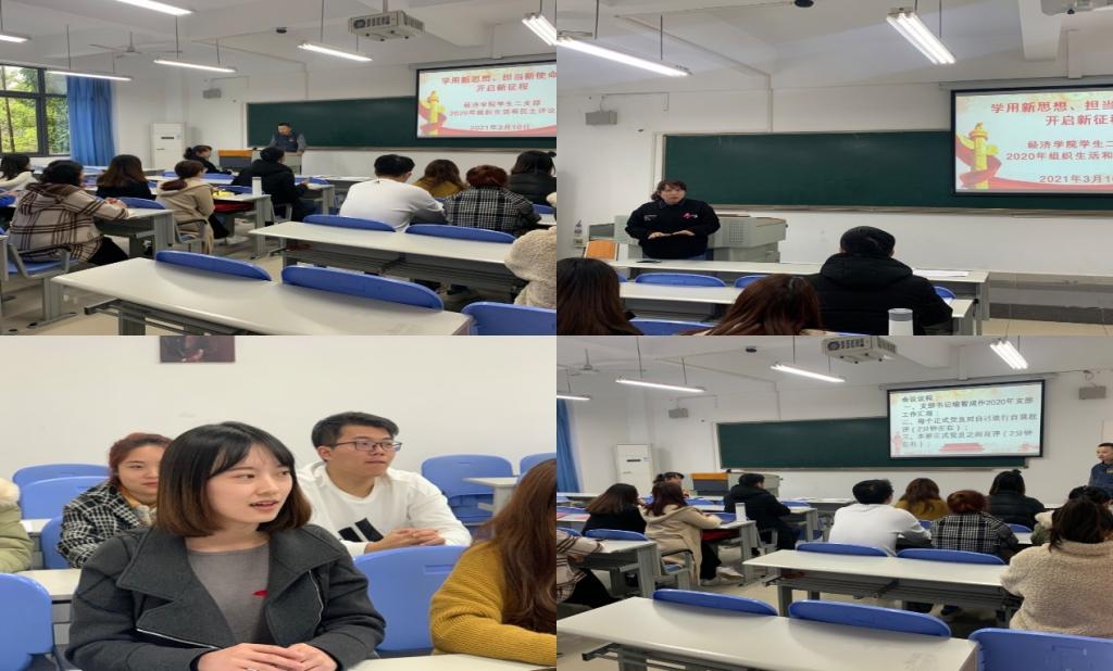 首先,由支部书记喻智成对2020年度的支部工作情况进行了工作汇报,他指出,过去的一年,是不寻常一年。在全民抗疫的背景下,学生二支部学生党员和积极分子用实际行动投身抗疫,支持抗疫。认真实施“三会一课”制度,积极组织开展主题党日活动,重点抓好学生党员发展工作。