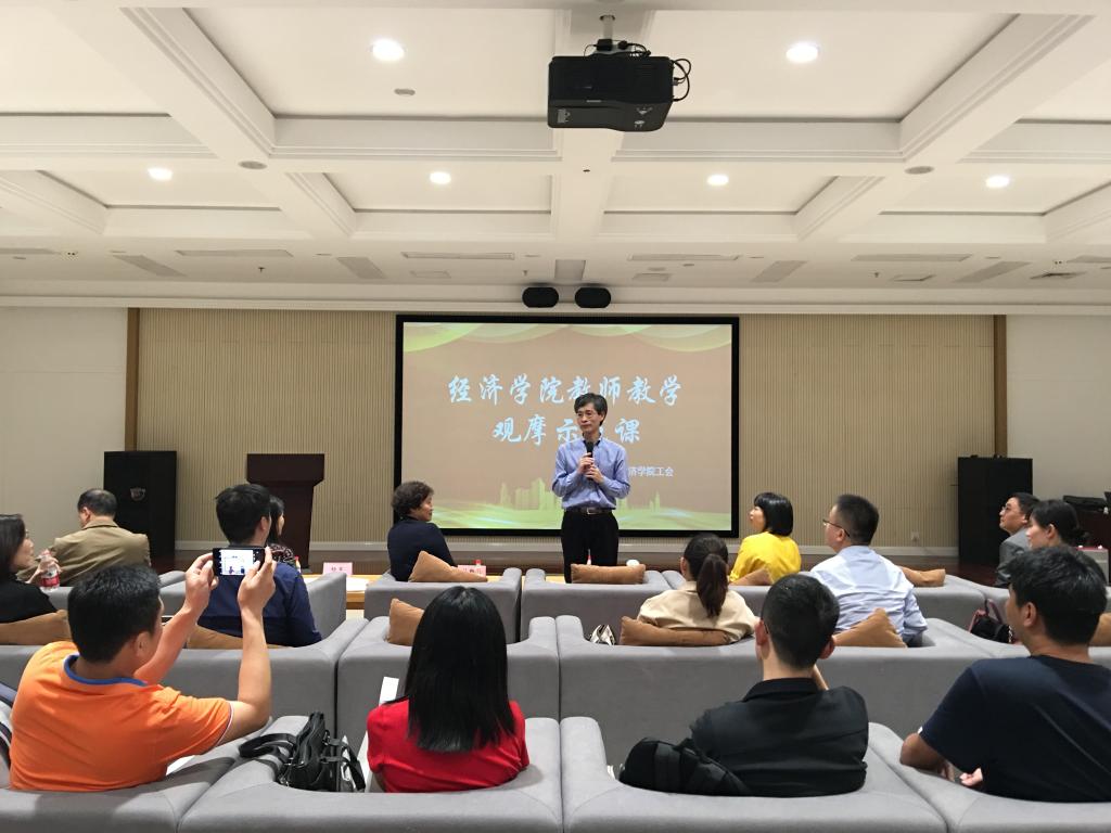讲课比赛结束后,校长孙芳城教授闻讯来到了活动现场,参加了第二阶段的观摩教学和教学经验分享会。曾多次荣获全校青年教师讲课比赛一等奖的贸经系主任杨海丽副教授,为大家做了题为“经管类专业教师如何讲好一门课”的教学经验分享。杨海丽老师结合自己在《零售学》和《商品学》教学中的经验,从“追求一种价值——自己的课堂价值”、“坚持两个根本——以教学为根本和以学生为根本”、“把握三个要素——态度、能力、体现”三个方面为大家做了精彩感人的教学分享,引起了现场领导及全体老师的高度兴趣和肯定,年轻老师们更是表示获益匪浅。教学经验分享之后,孙芳城校长做了重要讲话。孙校长首先肯定了新葡萄8883官网AMG这个活动,也希望学院今后把讲课比赛继续做下去,充分发挥老教师的作用,把老教师的好的经验和资源分享传递给青年教师。随后,孙校长结合学校的发展,语重心长地对老师们提出了几点希望:首先,做为大学老师,要清楚自己的责任,责任重于山。希望老师们不要简单把老师作为谋生的手段,对学生要有责任,要做社会和家长们所希望的好老师;第二,老师的基本功很重要,我们的专业老师都没有经过专业的师范训练,教学技巧和基本功更多地是边教边学,包括老师的课堂礼仪和穿着打扮,对学生都有很大影响,我们老师要多进行教学反思。孙校长对杨海丽老师分享的教学理念和技能表示充分肯定和赞成,他说,大多数学生都希望老师在课堂上讲得精彩,还要讲得有内容,还要有正能量、积极向上。孙校长还结合自己的成长经历分享了他的教育教学感悟。