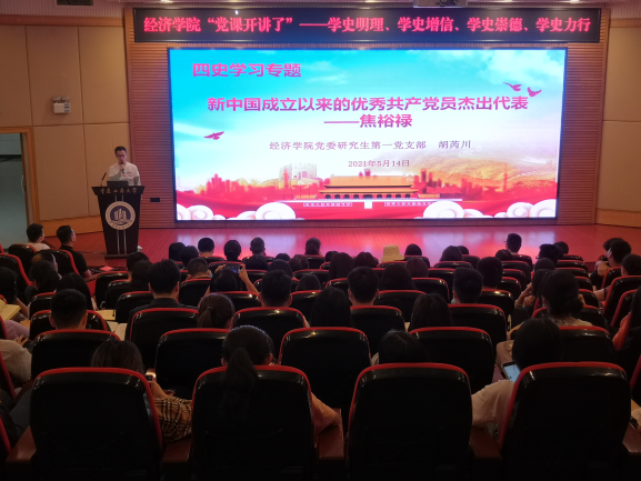 本次“党课开讲啦”由6个支部党员主讲,教工一支部书记李然、教工二支部党员老师杨军结合亲身经历,用丰富的专业知识讲述了中国改革开放史和商贸流通改革史;学生一支部许耀文和学生二支部书记喻智成则用大量、详实的历史图片和影像,生动地讲述了革命浪潮之五卅运动和坚苦卓绝之湘江战役;研究生一支部学生党员胡芮川和研究生二支部学生党员秦雪华声情并茂地讲述了优秀共产党员焦裕禄、黄大年的先进事迹。每个党员的讲述有历史材料,有成果分析,更有个人感悟,让每一个参会人员身心投入其讲述中,受到教育,得到启迪。