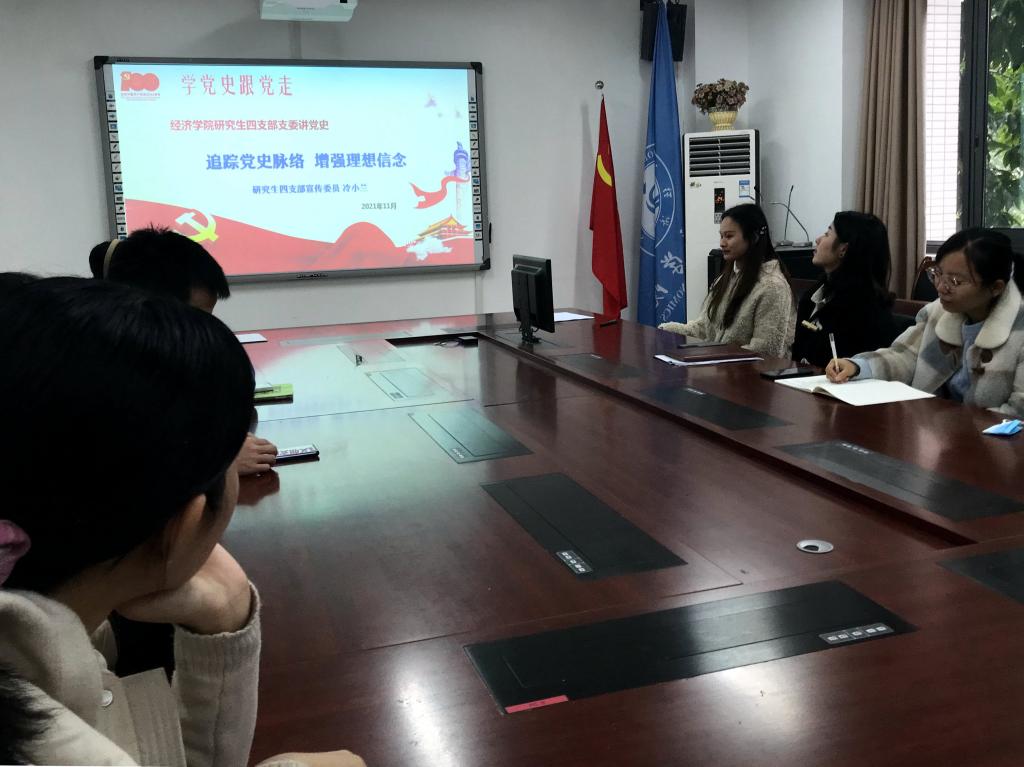 为加强党史学习和贯彻习近平七一讲话精神,2021年11月28日,研究生四支部组织委员方涛、宣传委员冷小兰在田家炳404会议室为新葡萄8883官网AMG学风督查小组讲党史,新葡萄8883官网AMG研究生四支部书记张国培、研究生四支部上一届组织委员刘一波、新葡萄8883官网AMG全体学风督查小组成员参加学习活动。本次讲党史活动是研究生四支部“支委讲党史”系列活动之一。